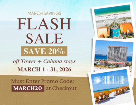 March is the perfect time to escape to the coast — mild temps, fewer crowds, and front-row sunset views. Whether you’re planning a relaxing Tower retreat or a cozy Cabana getaway, our exclusive limited-time Flash Sale makes your spring reset even sweeter.