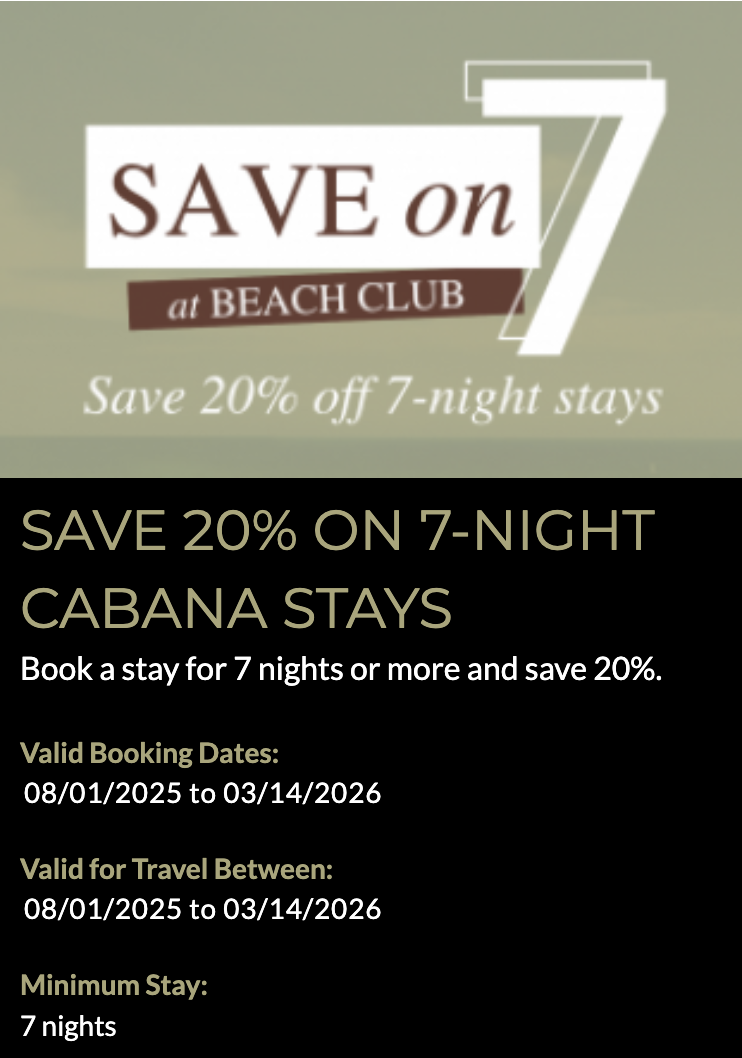 Save 20% on 7-Night Cabana Stays